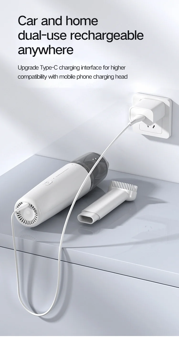 This mini vacuum cleaner is compact and lightweight, making it perfect for on-the-go use. The ergonomic handheld design allows for easy maneuvering in tight spaces, ideal for cleaning car interiors or home corners.