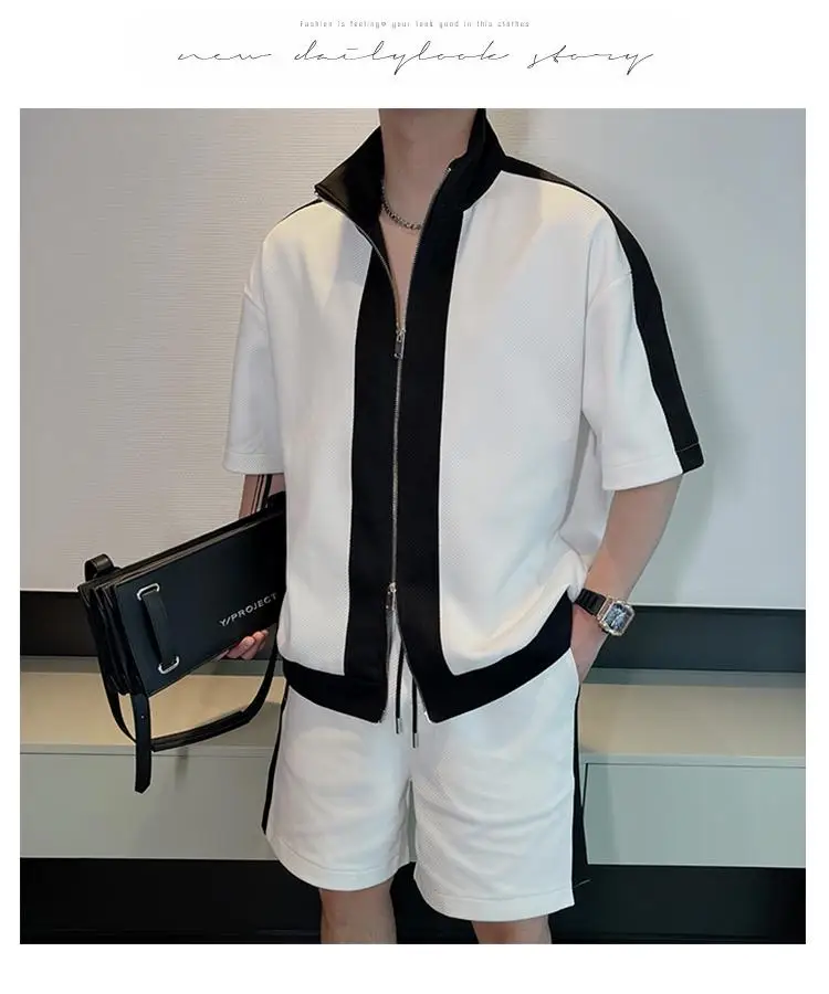 Ensemble 2 Pièces Homme - Polo Contrasté & Short Korean Fit